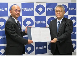 左から中村和歌山県危機管理部長、小村哲也和歌山協組理事長