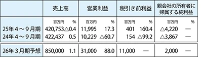日本板硝子(細沼宗浩社長)は11月6日、2025年4〜9月期の連結決算を発表。売上高は4207億5300万円、2024年同期比0.4%減。営業利益は119億9500万円、同17.3%増、税引き前利益は4億100万円、同160.4%増、親会社の所有者に帰属する純損益は42億2000万円の損失となった。主に欧州の建築用ガラス事業で販売価格が上昇した結果、売上高と営業利益は5月9日公表の予想数値を上回ったが、英国債売却に伴う損失を個別開示項目に計上したため、税引き前利益は予想数値を下回り、親会社所有者に帰属する純損失が予想数値より拡大した。